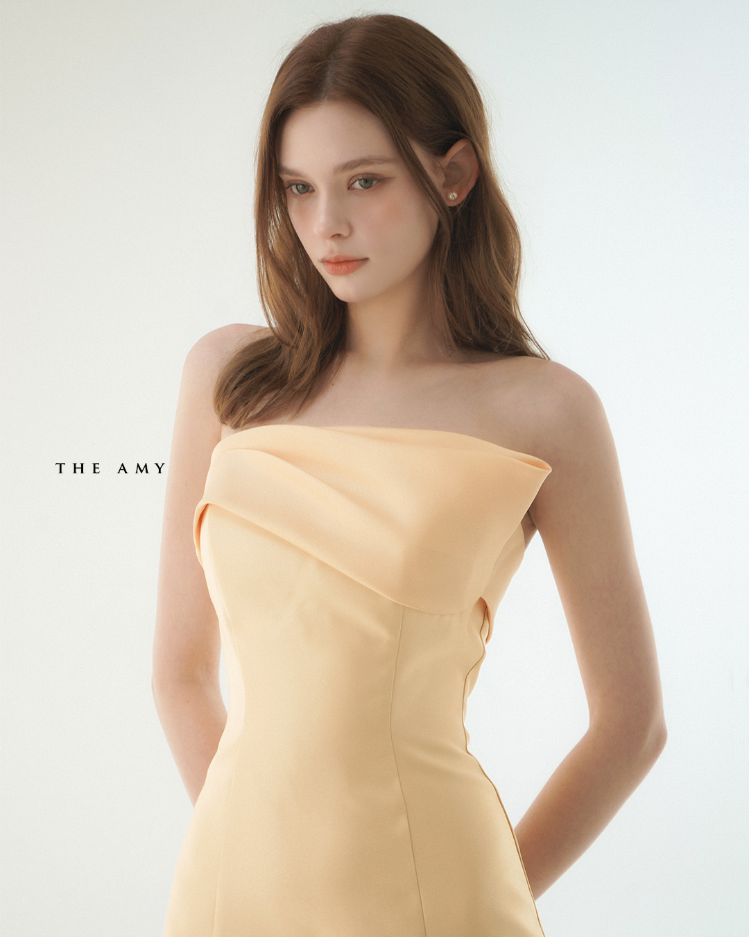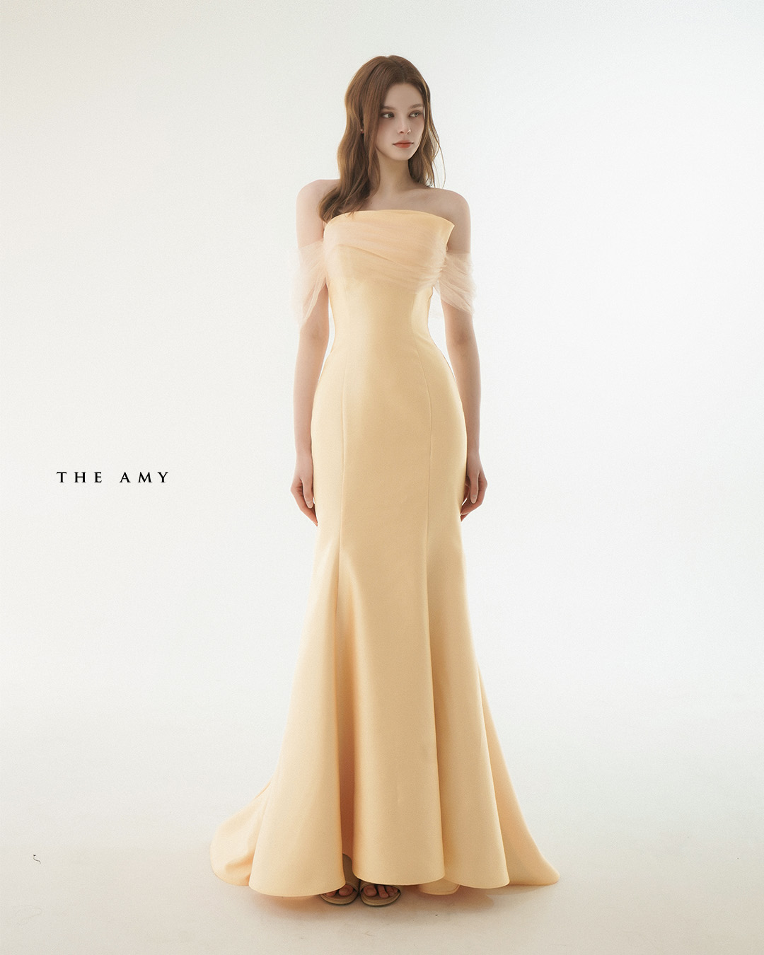 부드러운 크리미 옐로우 컬러가 시선을 머무르게 하는 드레스, ‘BUTTER 버터’ 입니다.