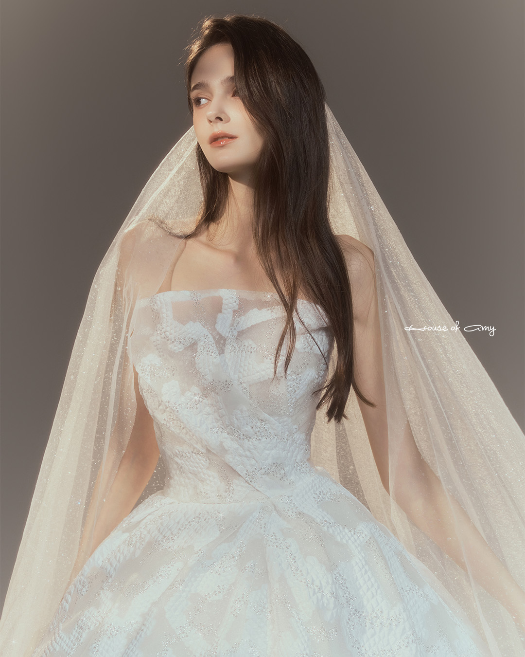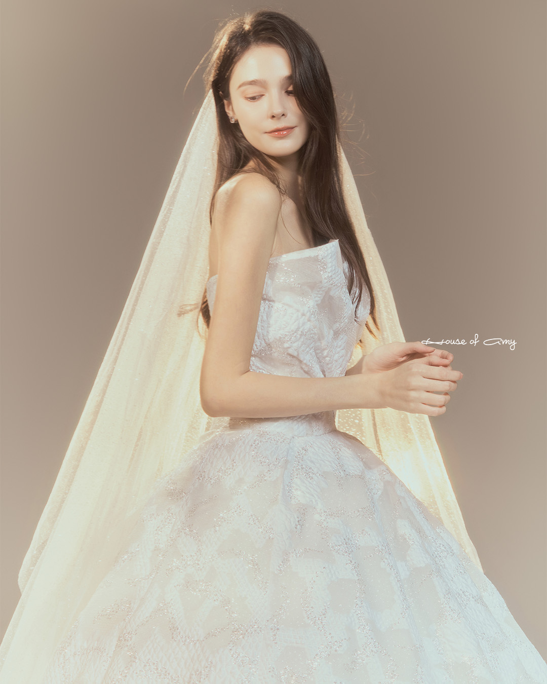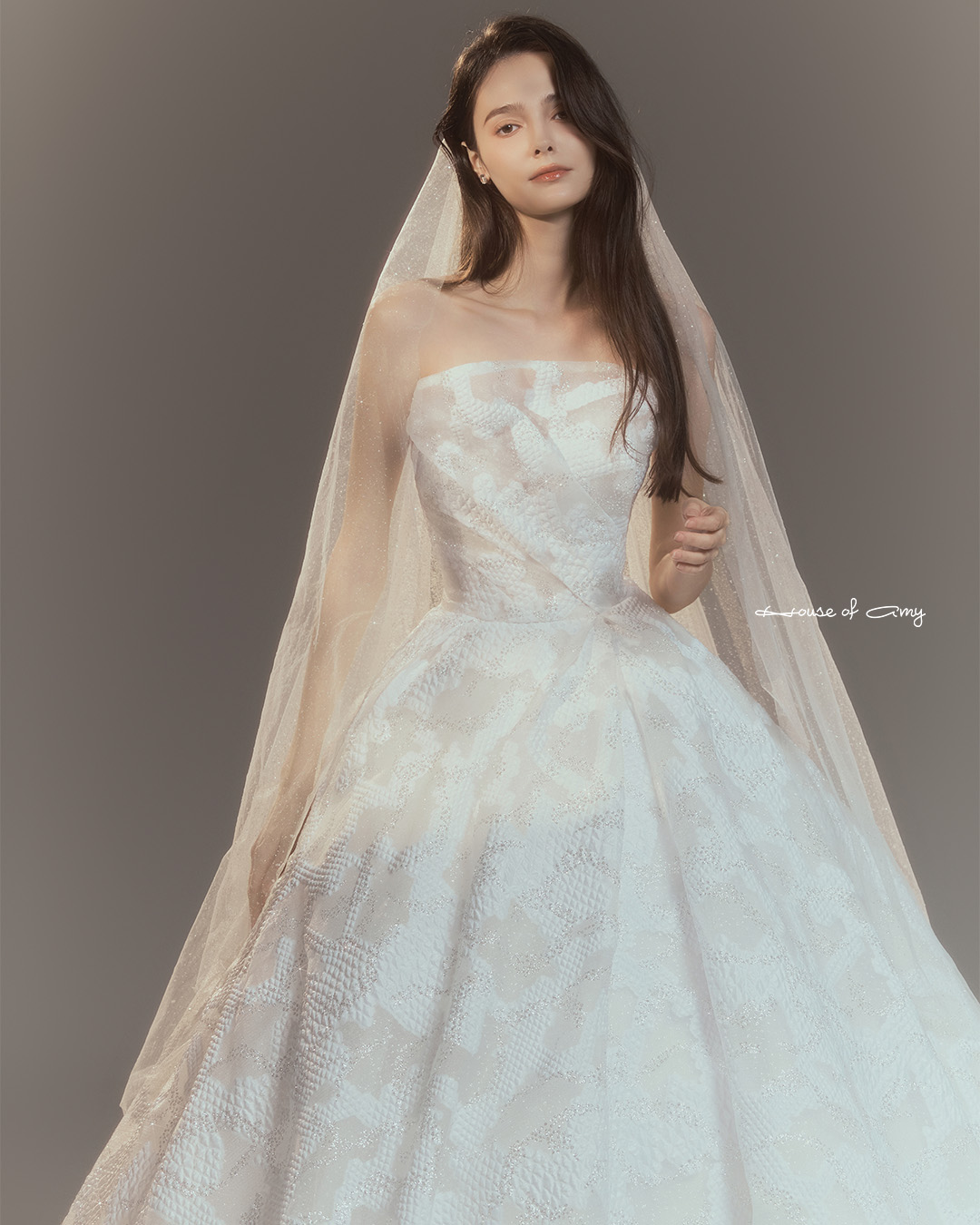 We overlap 3-6 fabrics to show classical and dreamlike colors of dresses which only can be found in the House of Amy.