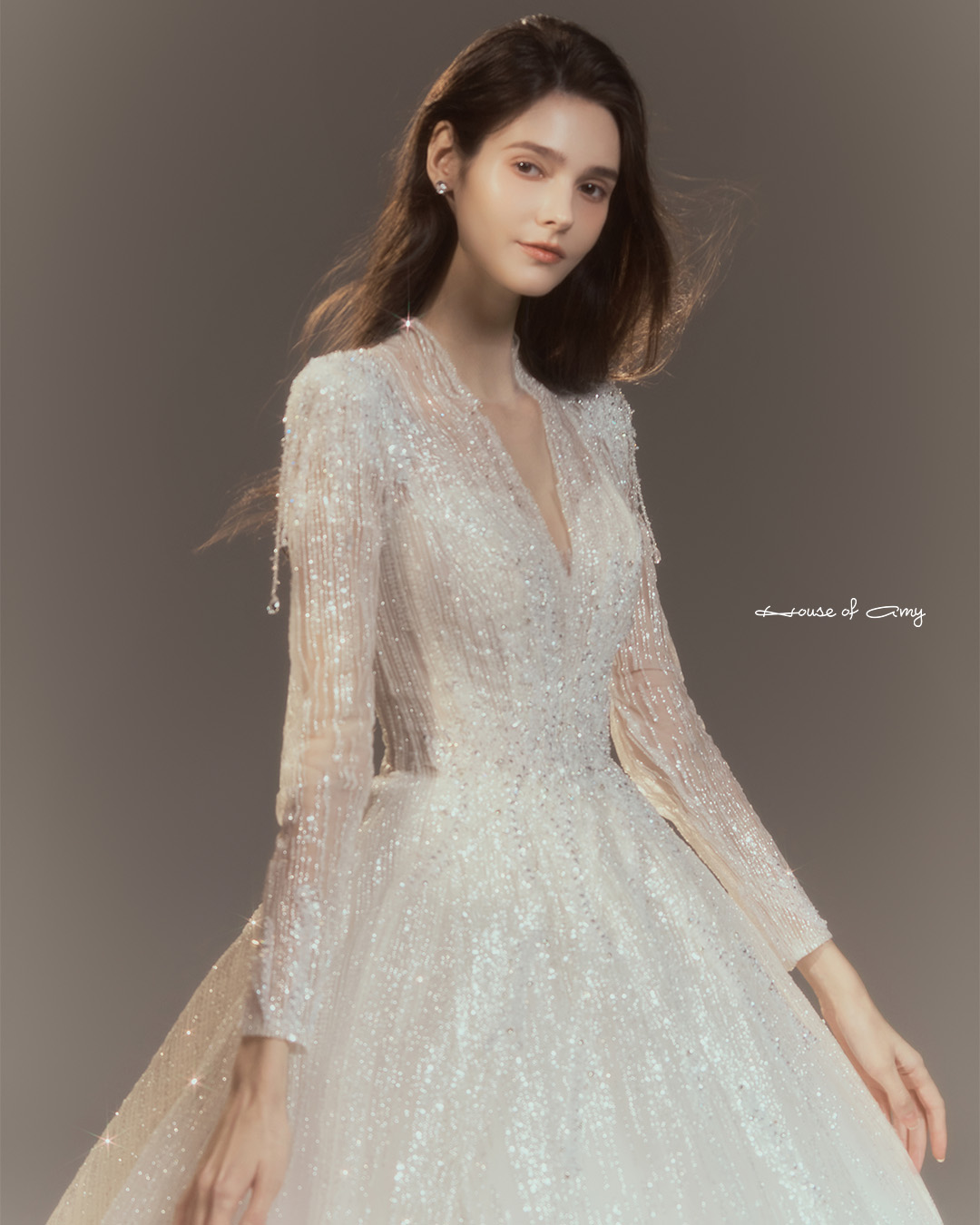 We overlap 3-6 fabrics to show classical and dreamlike colors of dresses which only can be found in the House of Amy.