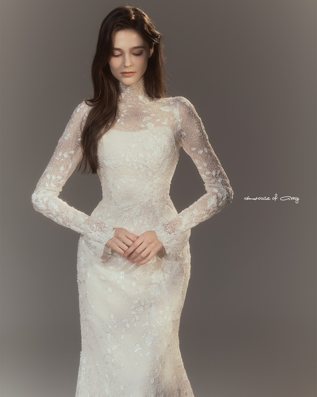 바디 라인을 살린 하이넥 레이스 드레스, ‘ETRE 에트르’ 입니다.