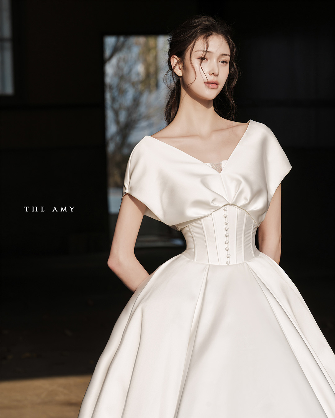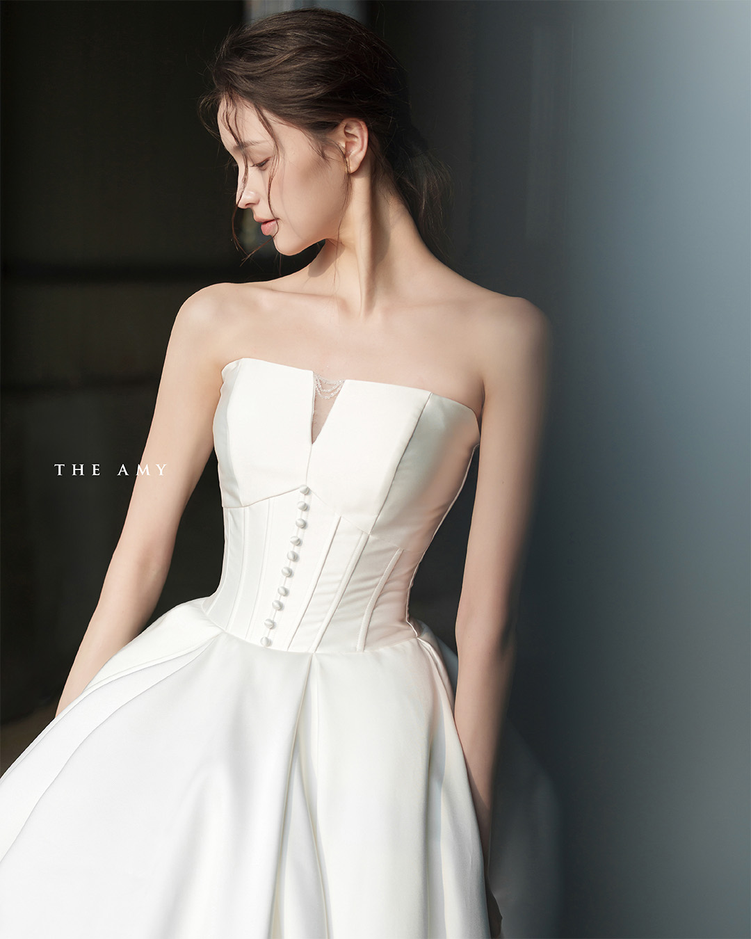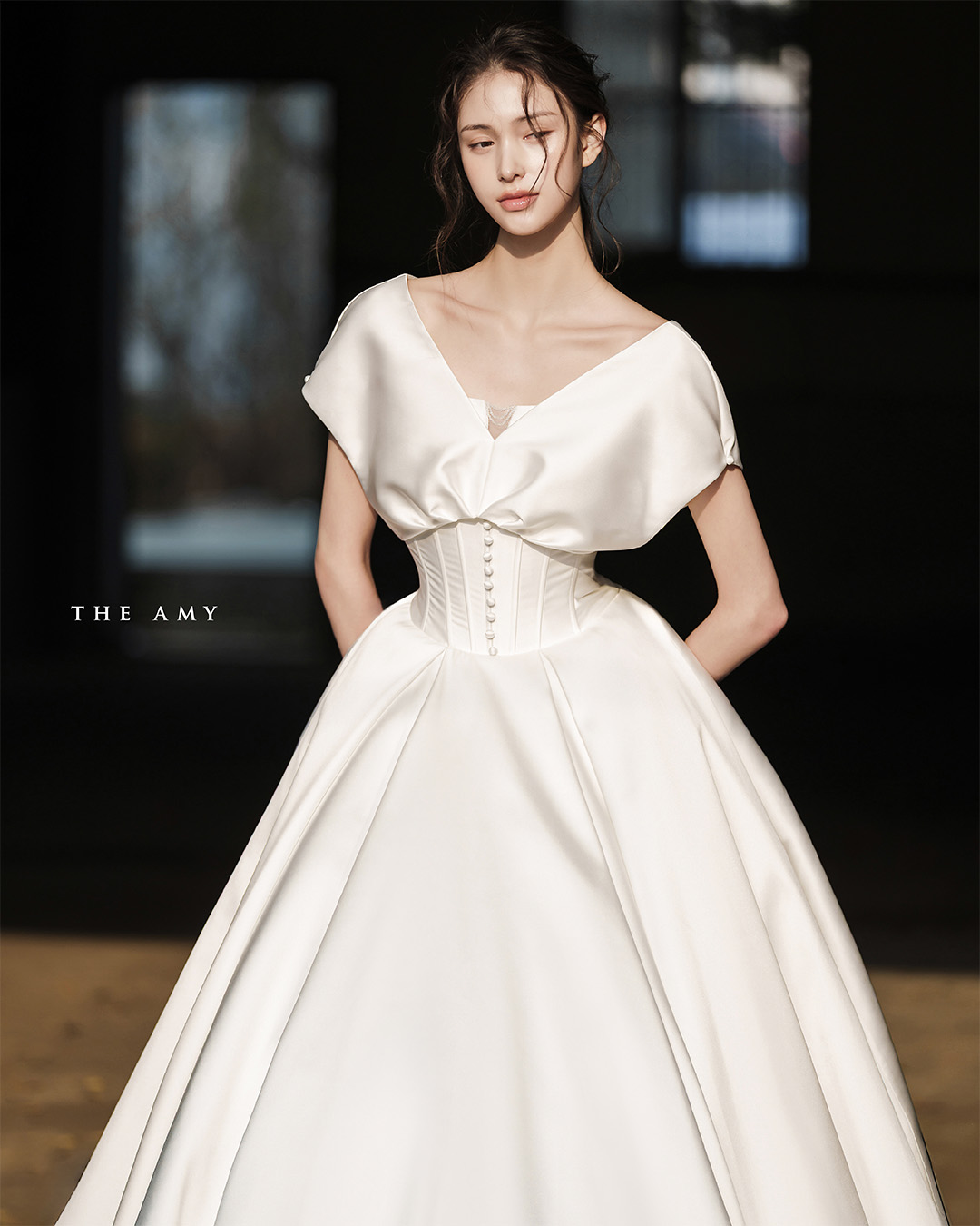 허리를 정교하게 잡아주는 코르셋 실루엣이 우아하고 세련된 실루엣을 완성합니다.