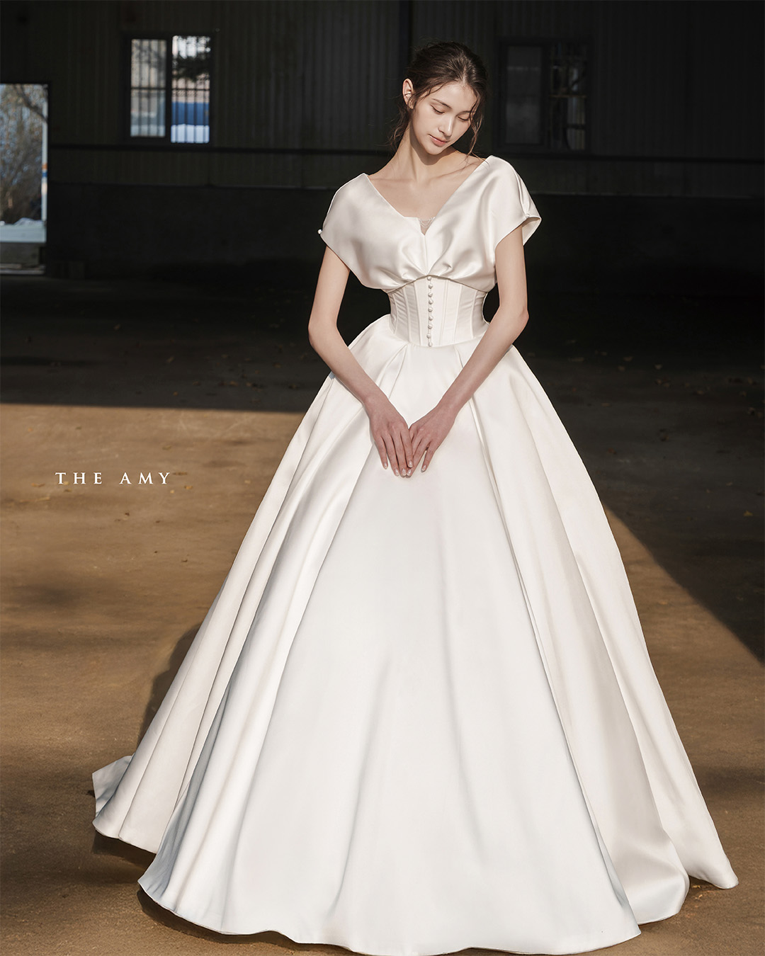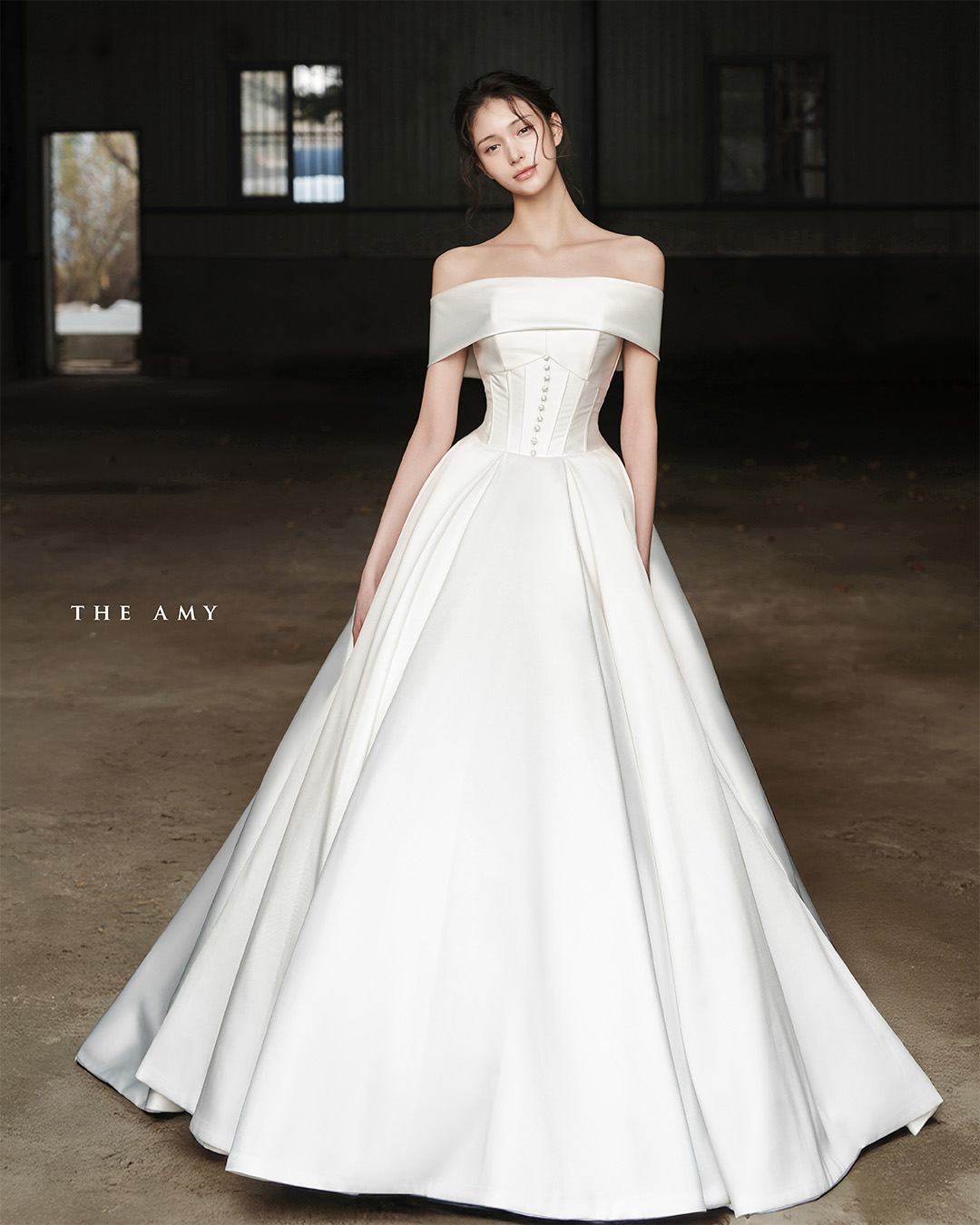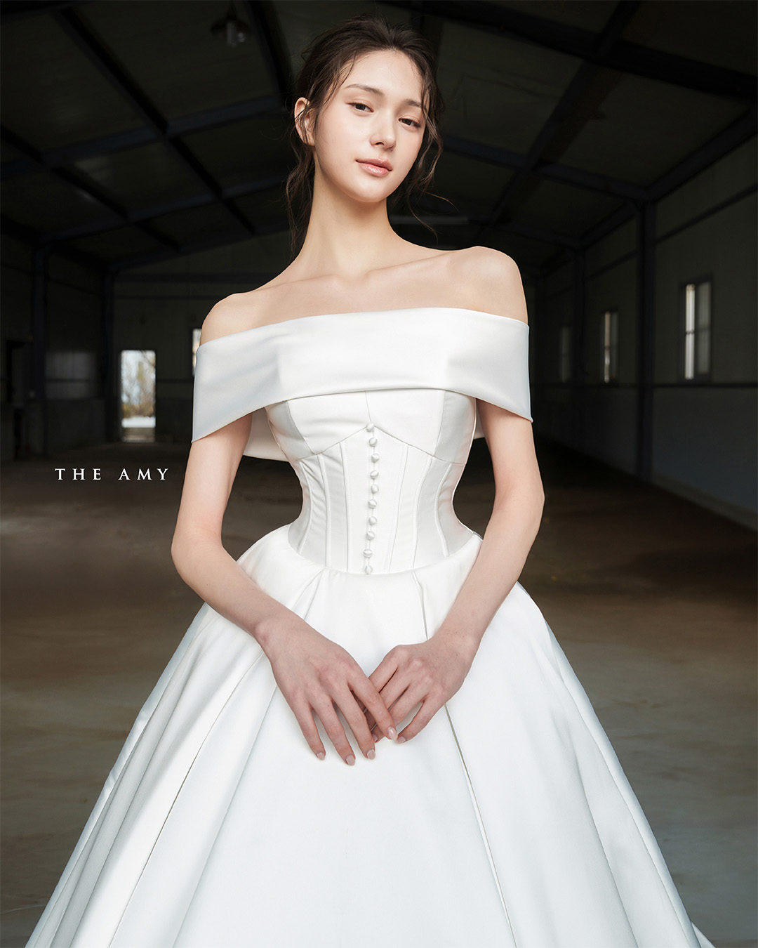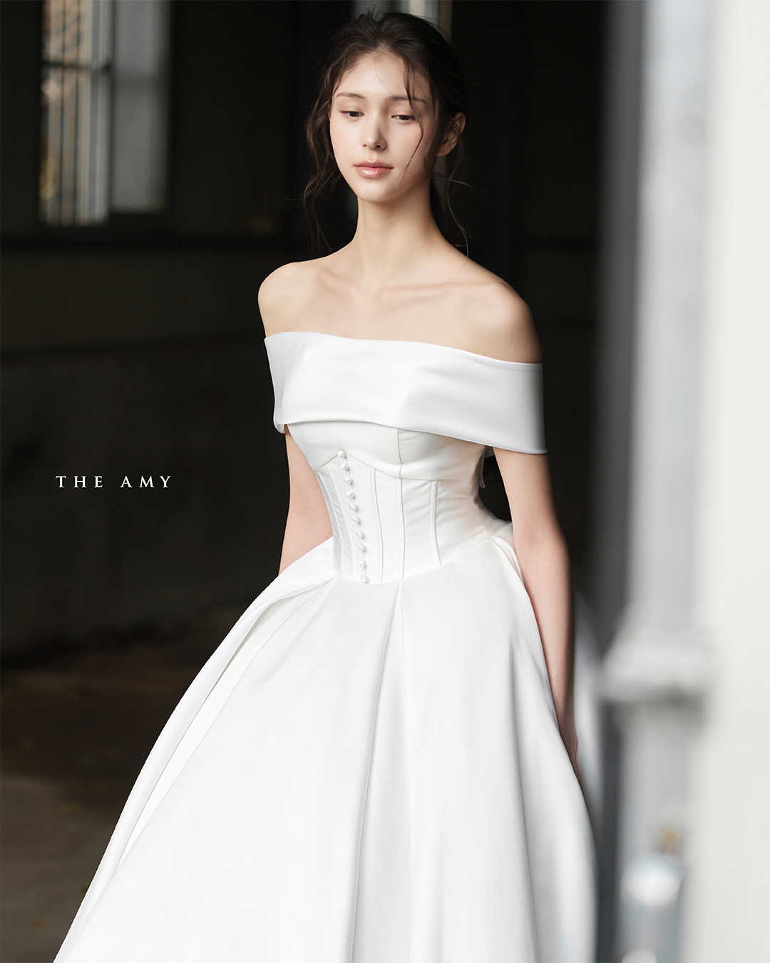 허리를 정교하게 잡아주는 코르셋 실루엣이 우아하고 세련된 실루엣을 완성합니다.