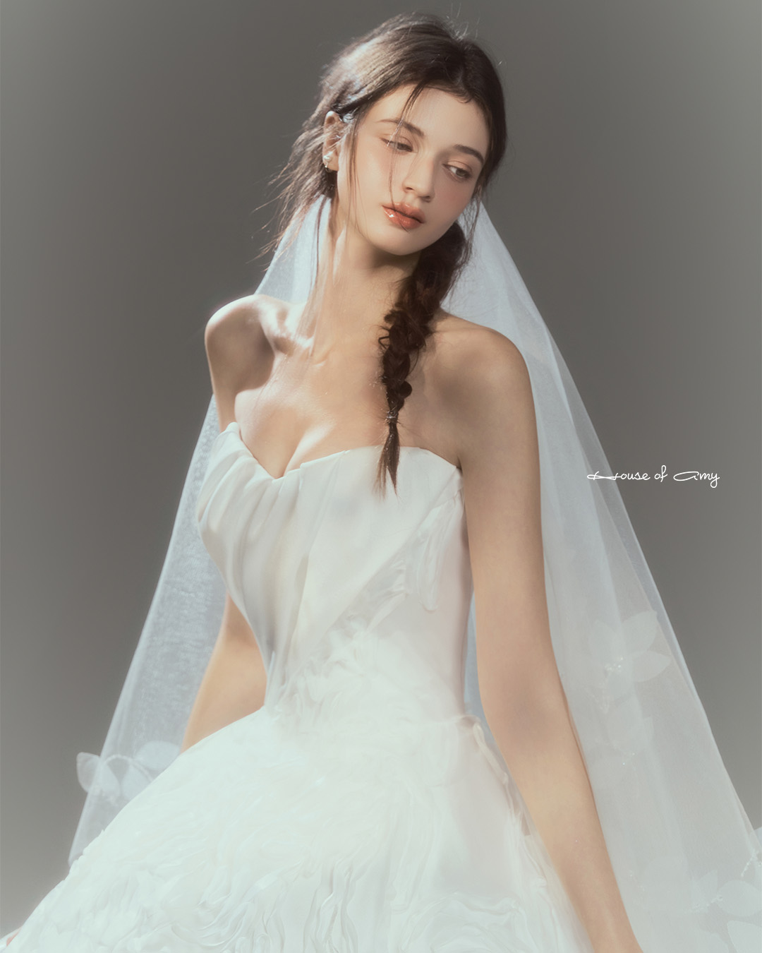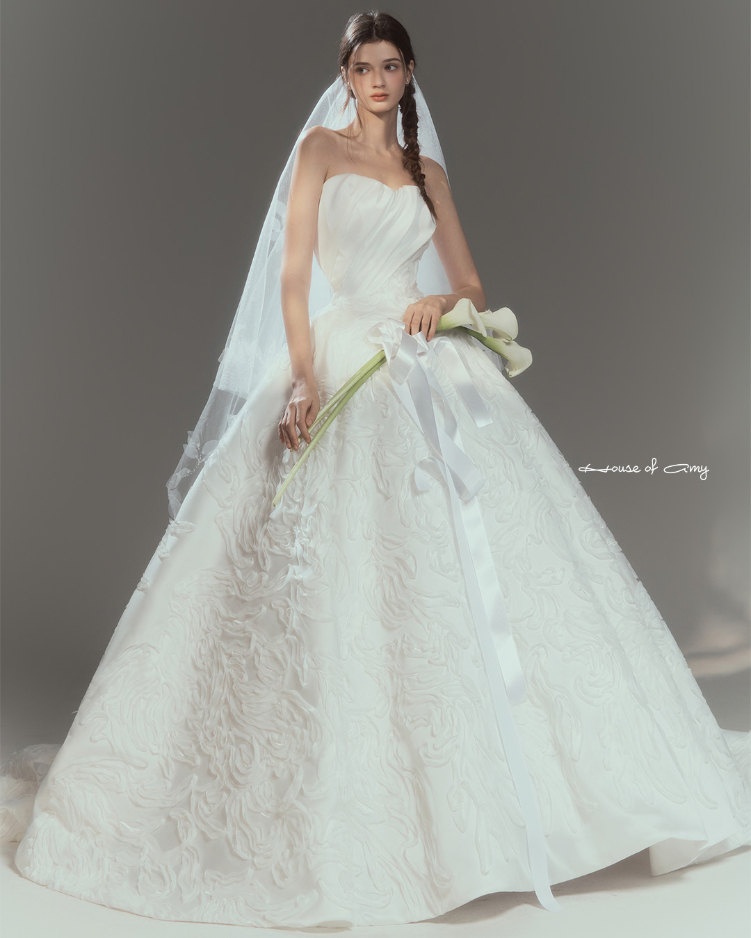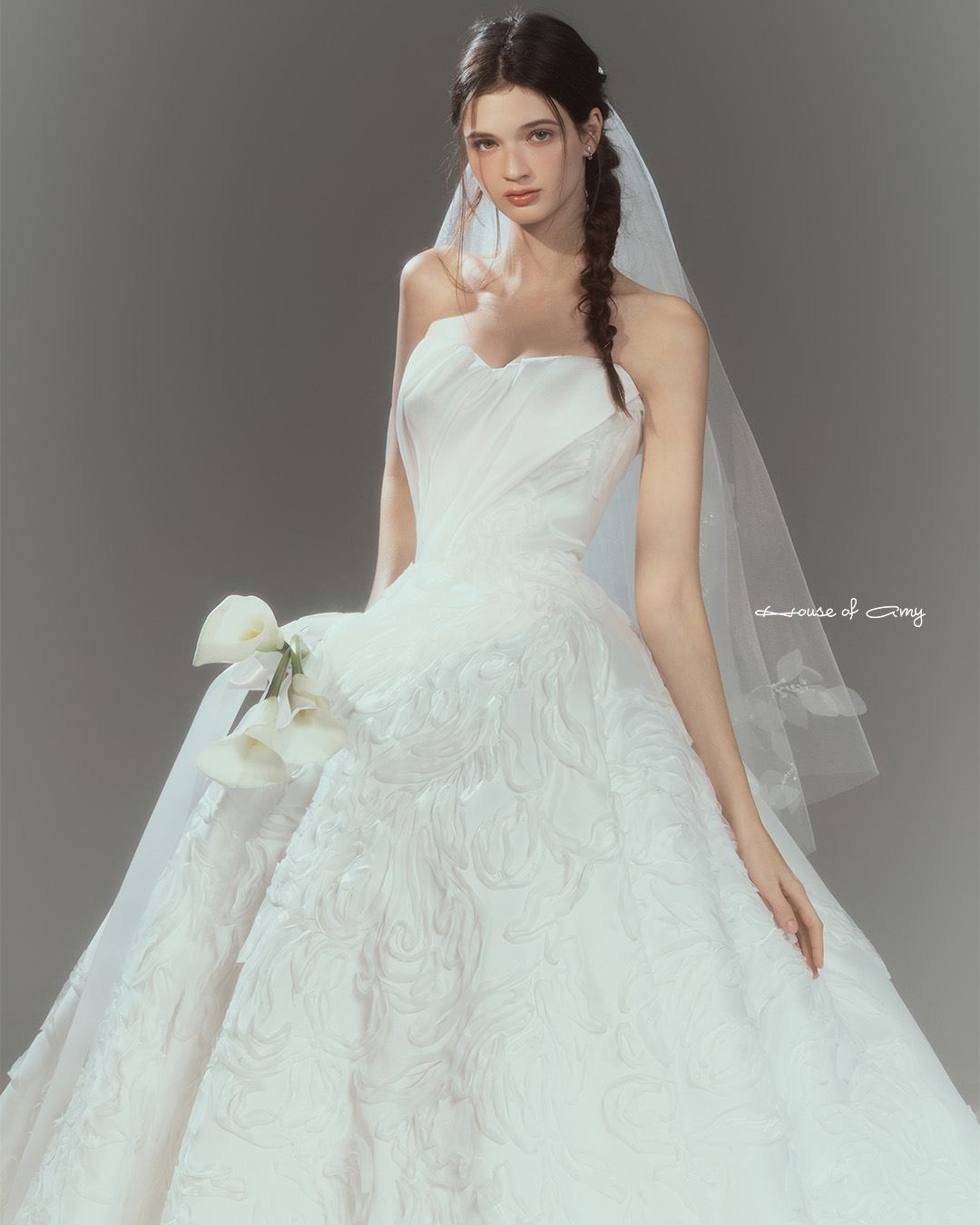 We overlap 3-6 fabrics to show classical and dreamlike colors of dresses which only can be found in the House of Amy.