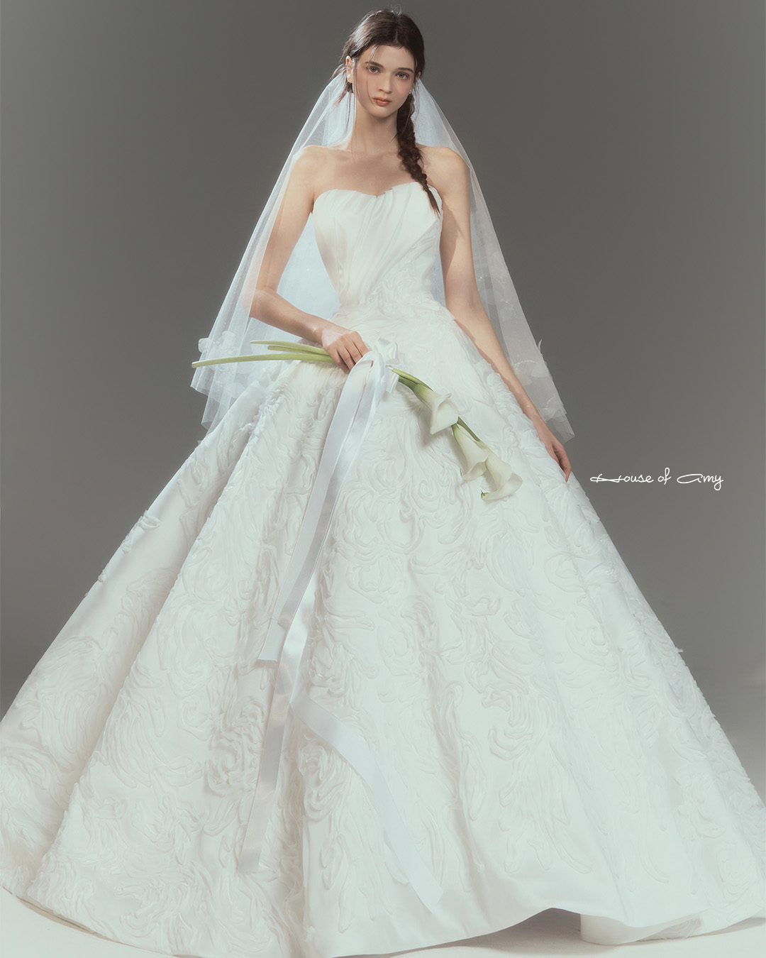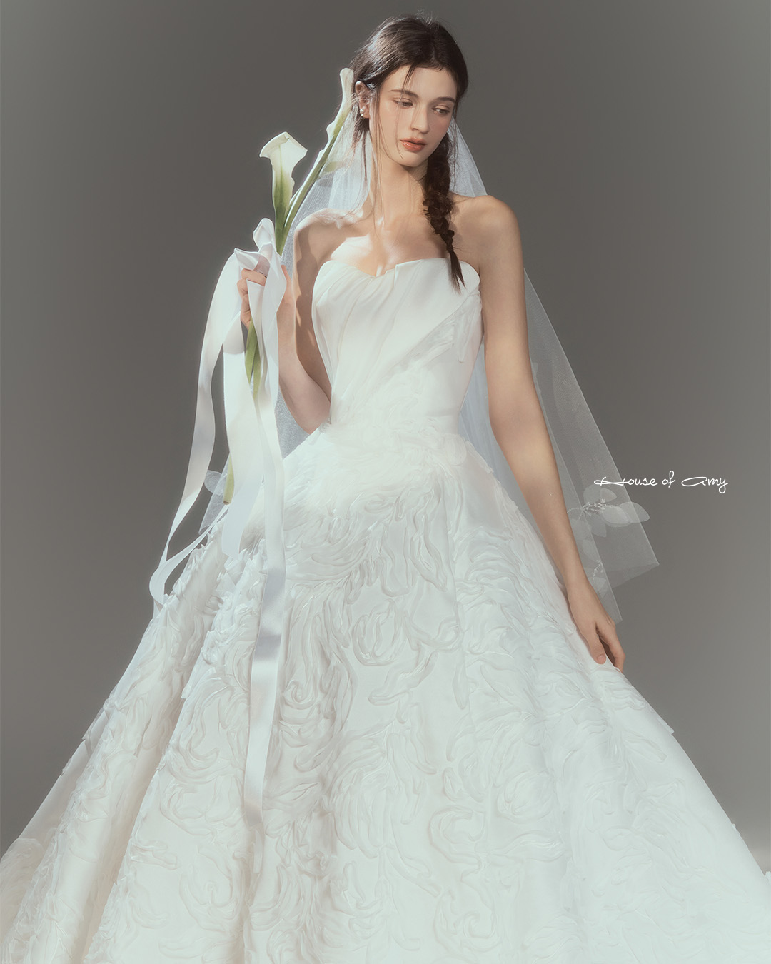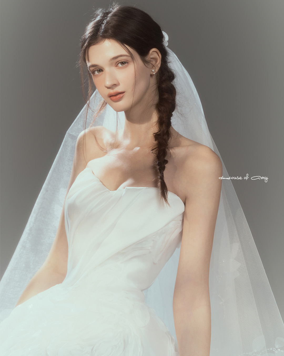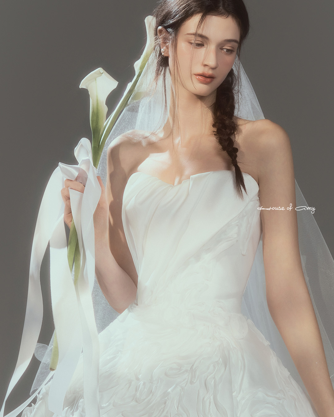 We overlap 3-6 fabrics to show classical and dreamlike colors of dresses which only can be found in the House of Amy.