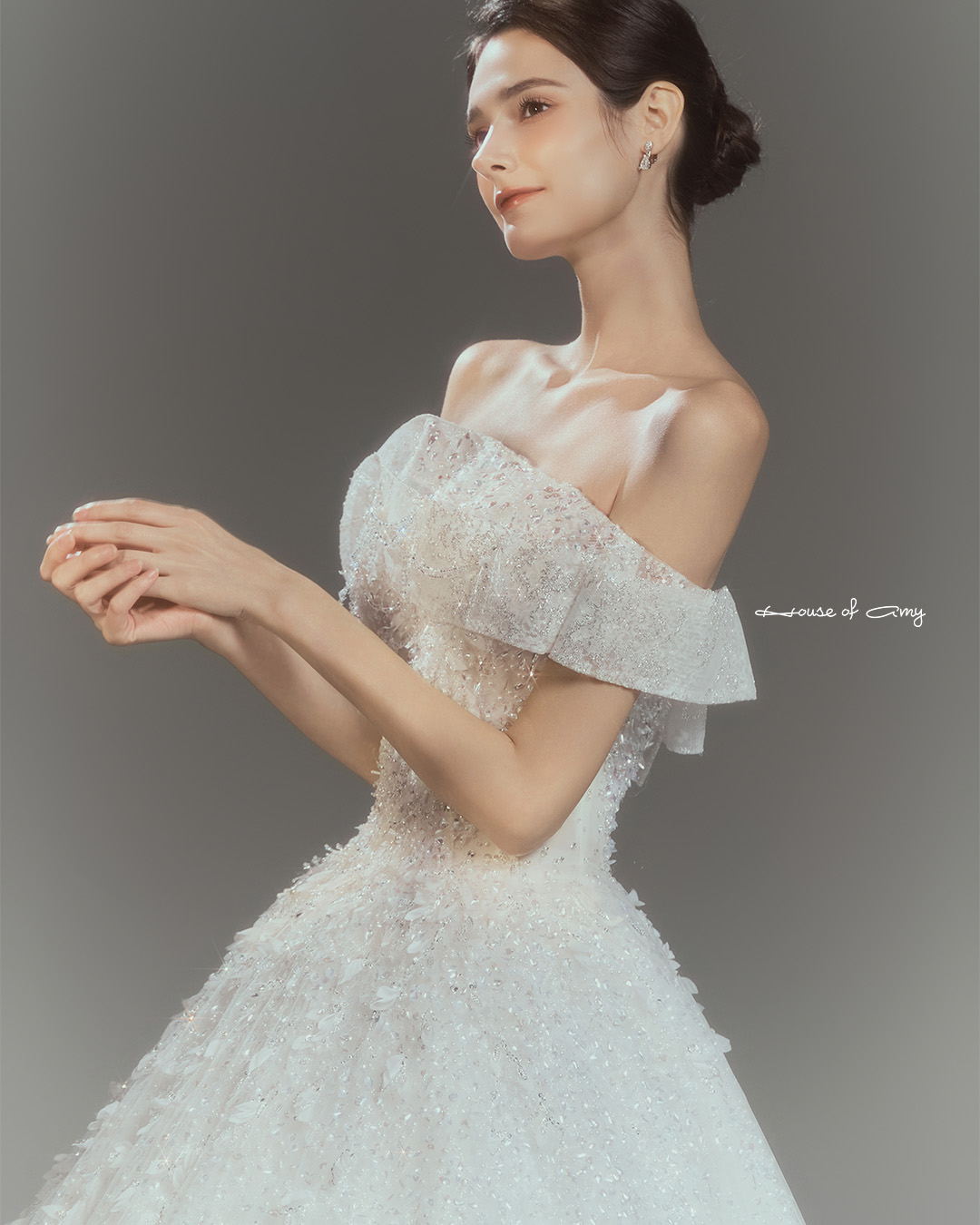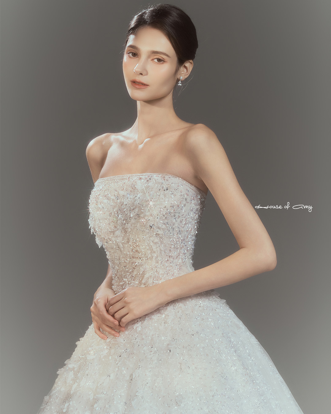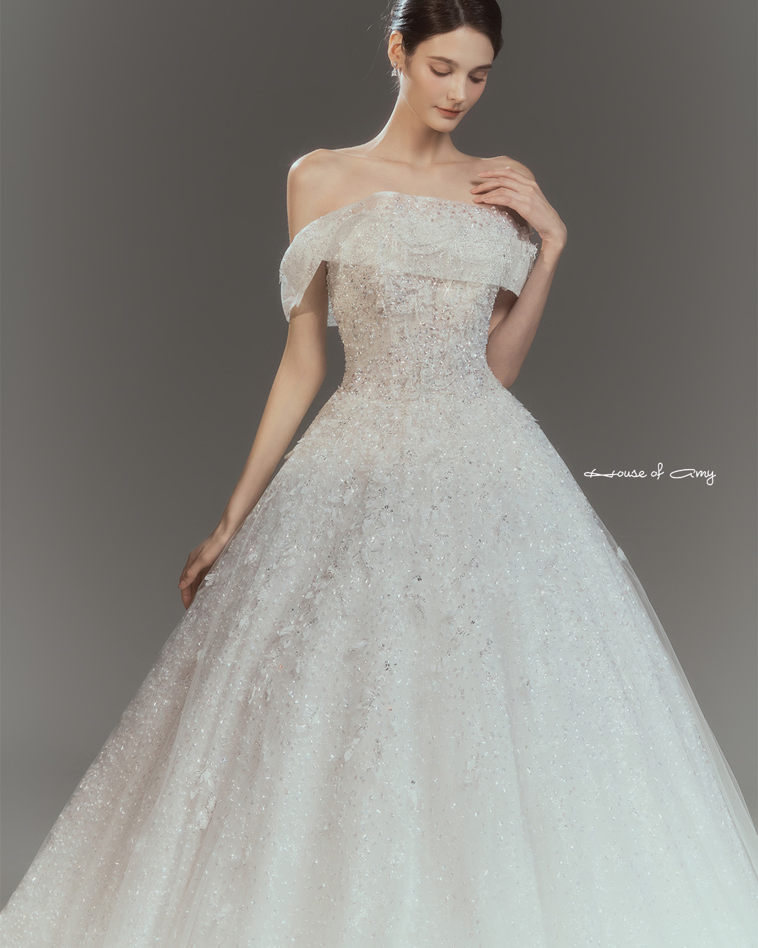 We overlap 3-6 fabrics to show classical and dreamlike colors of dresses which only can be found in the House of Amy.