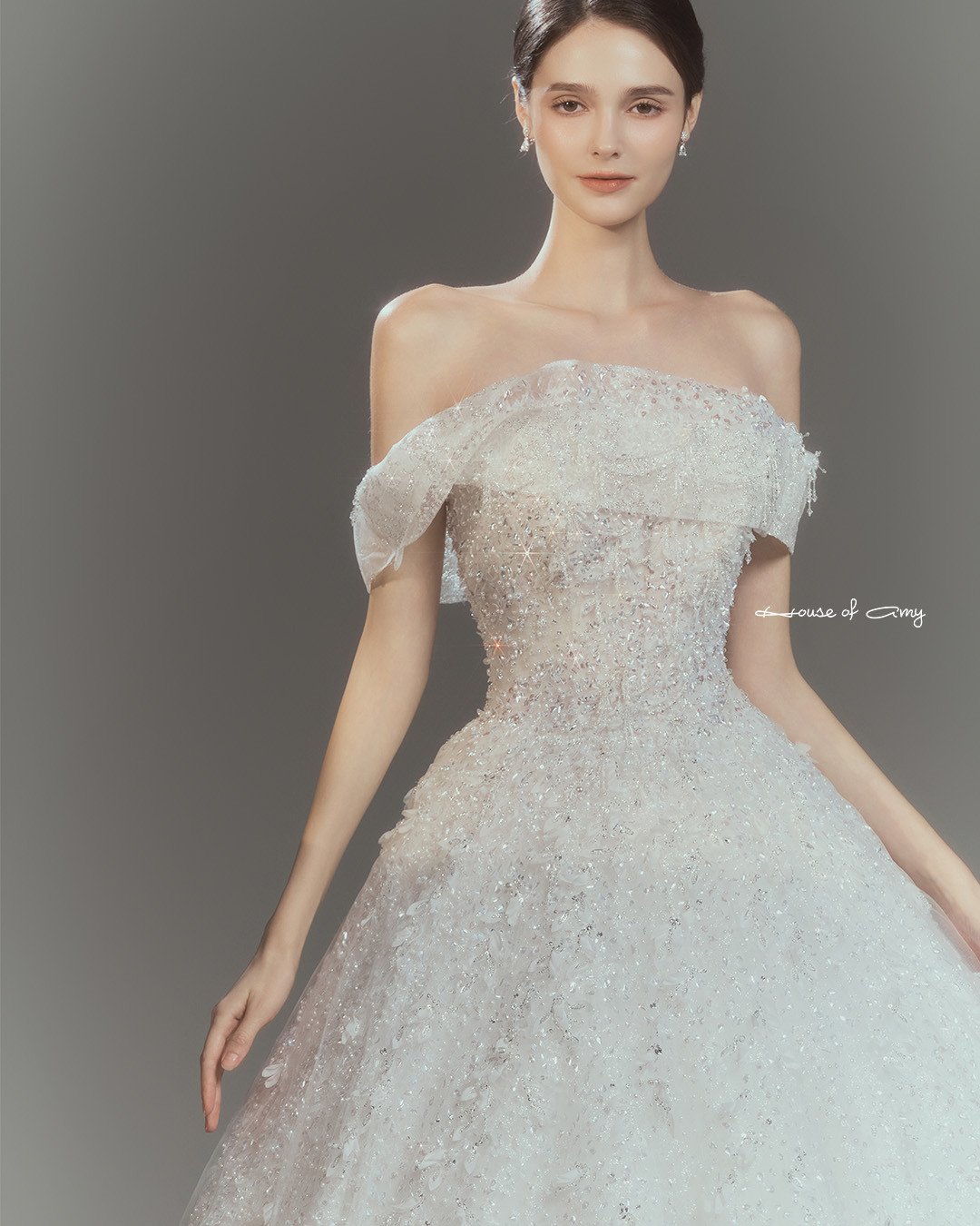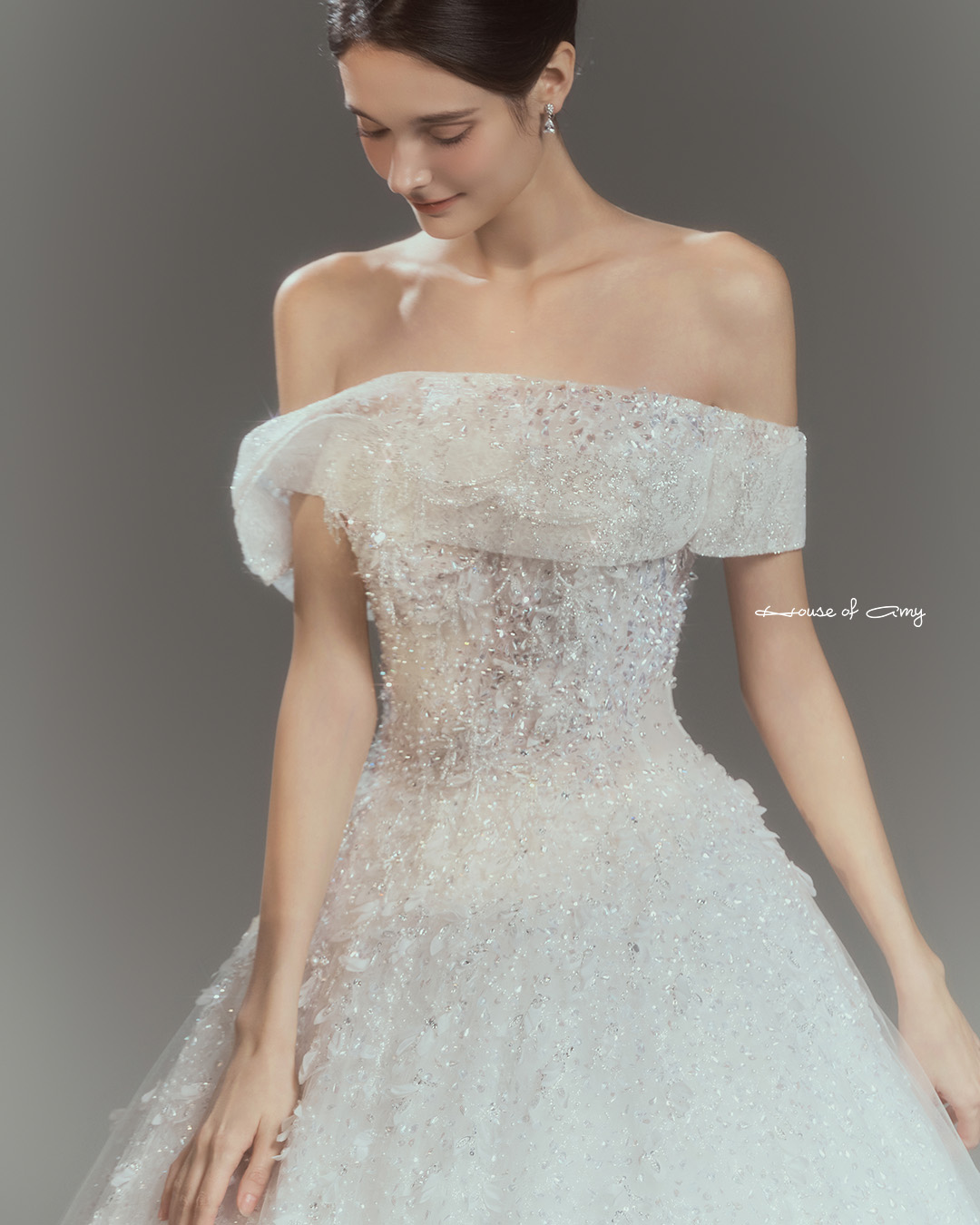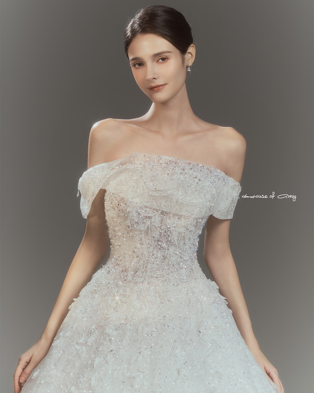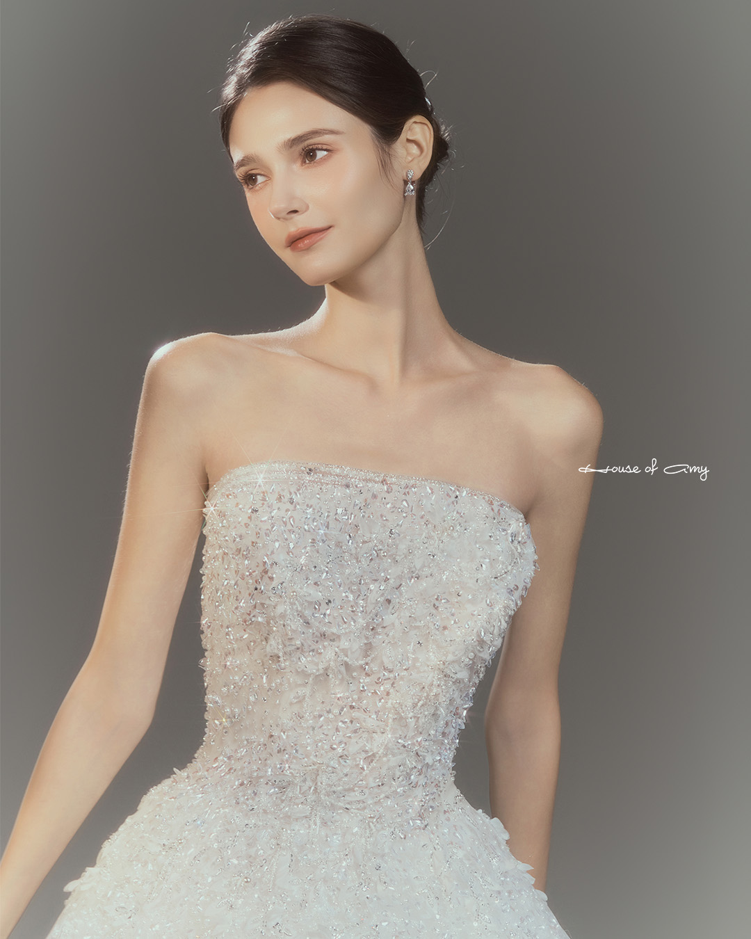 We overlap 3-6 fabrics to show classical and dreamlike colors of dresses which only can be found in the House of Amy.