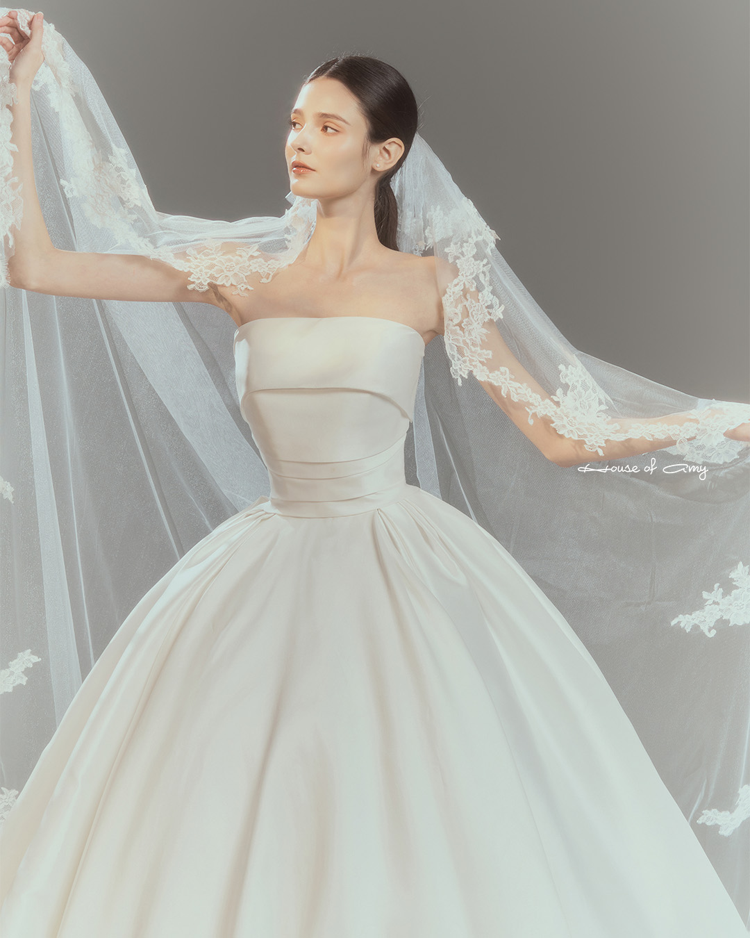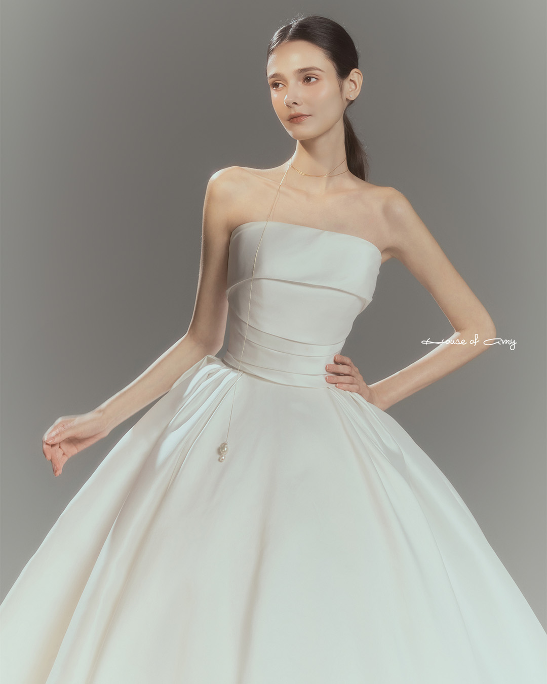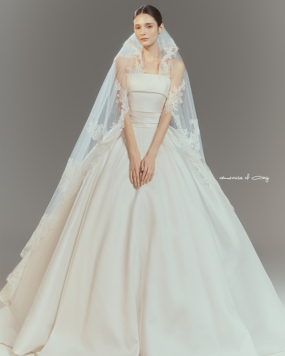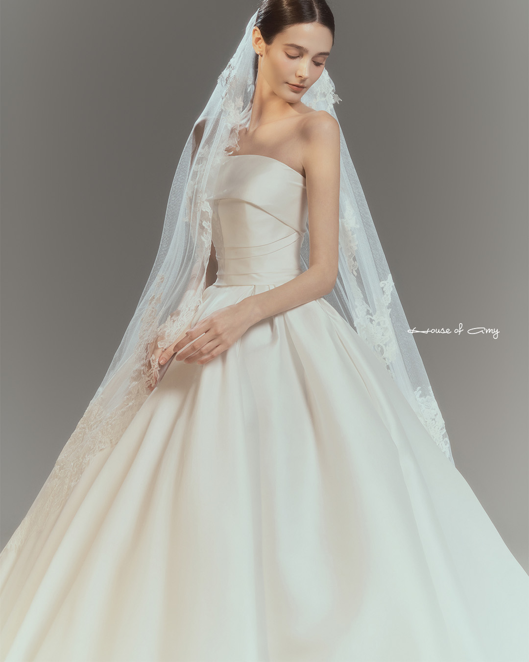 클래식한 탑 라인과 미카도 실크의 은은한 광택이 품격을 더하며,