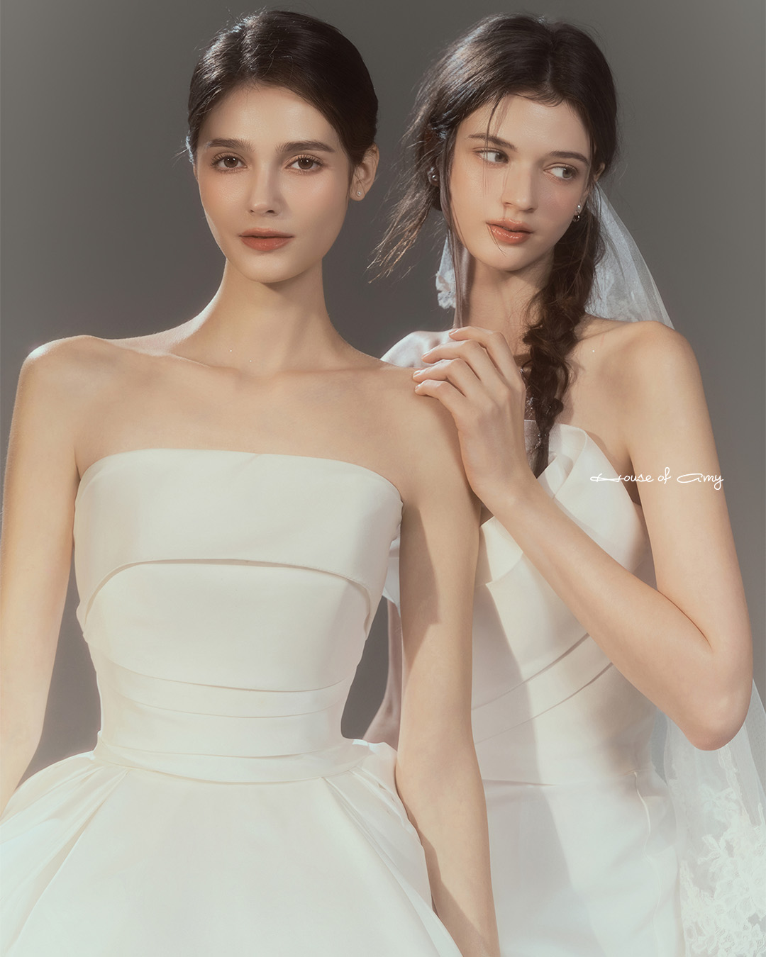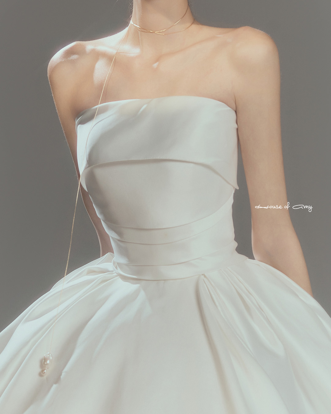 We overlap 3-6 fabrics to show classical and dreamlike colors of dresses which only can be found in the House of Amy.