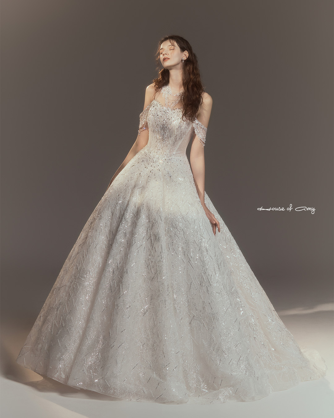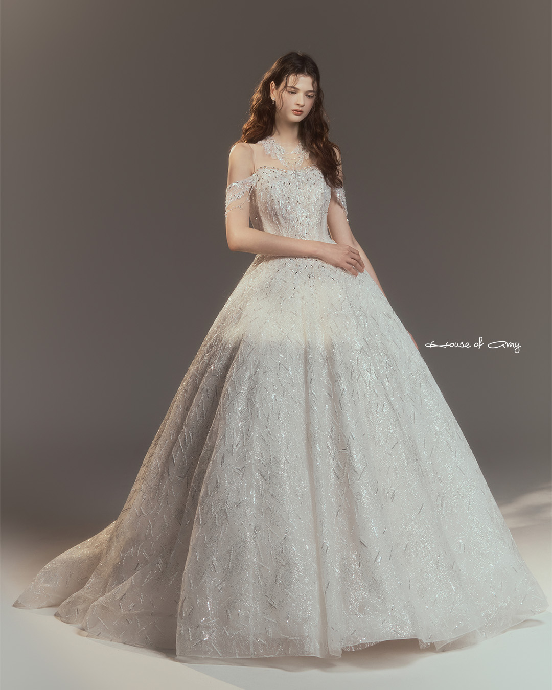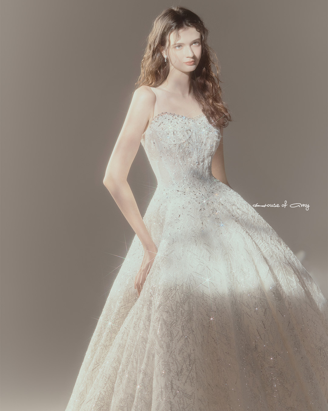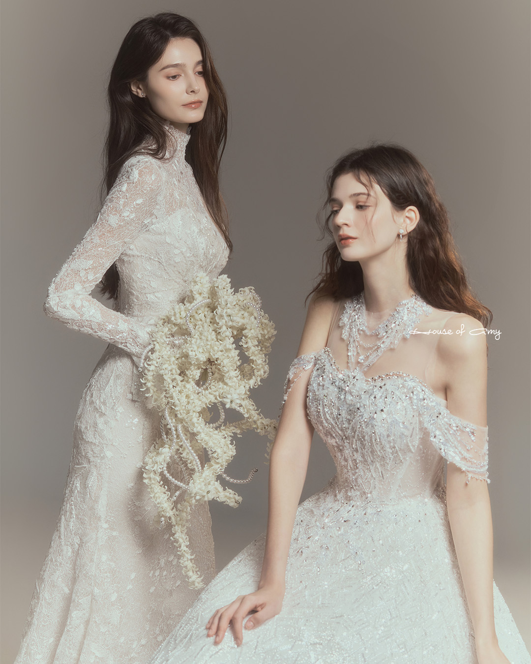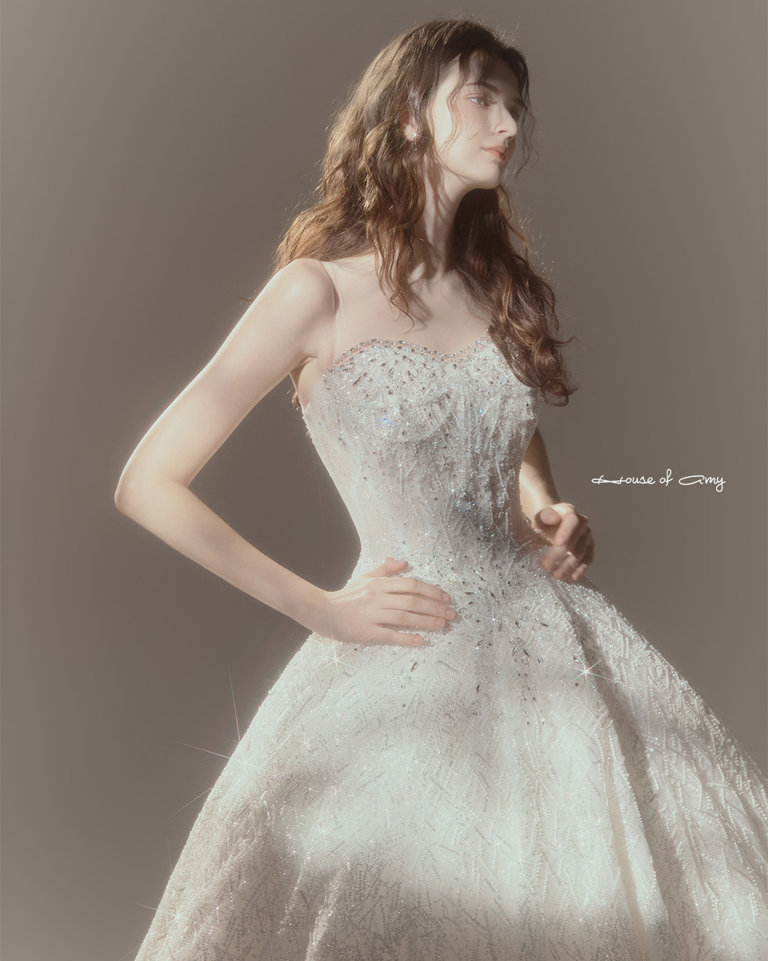 We overlap 3-6 fabrics to show classical and dreamlike colors of dresses which only can be found in the House of Amy.